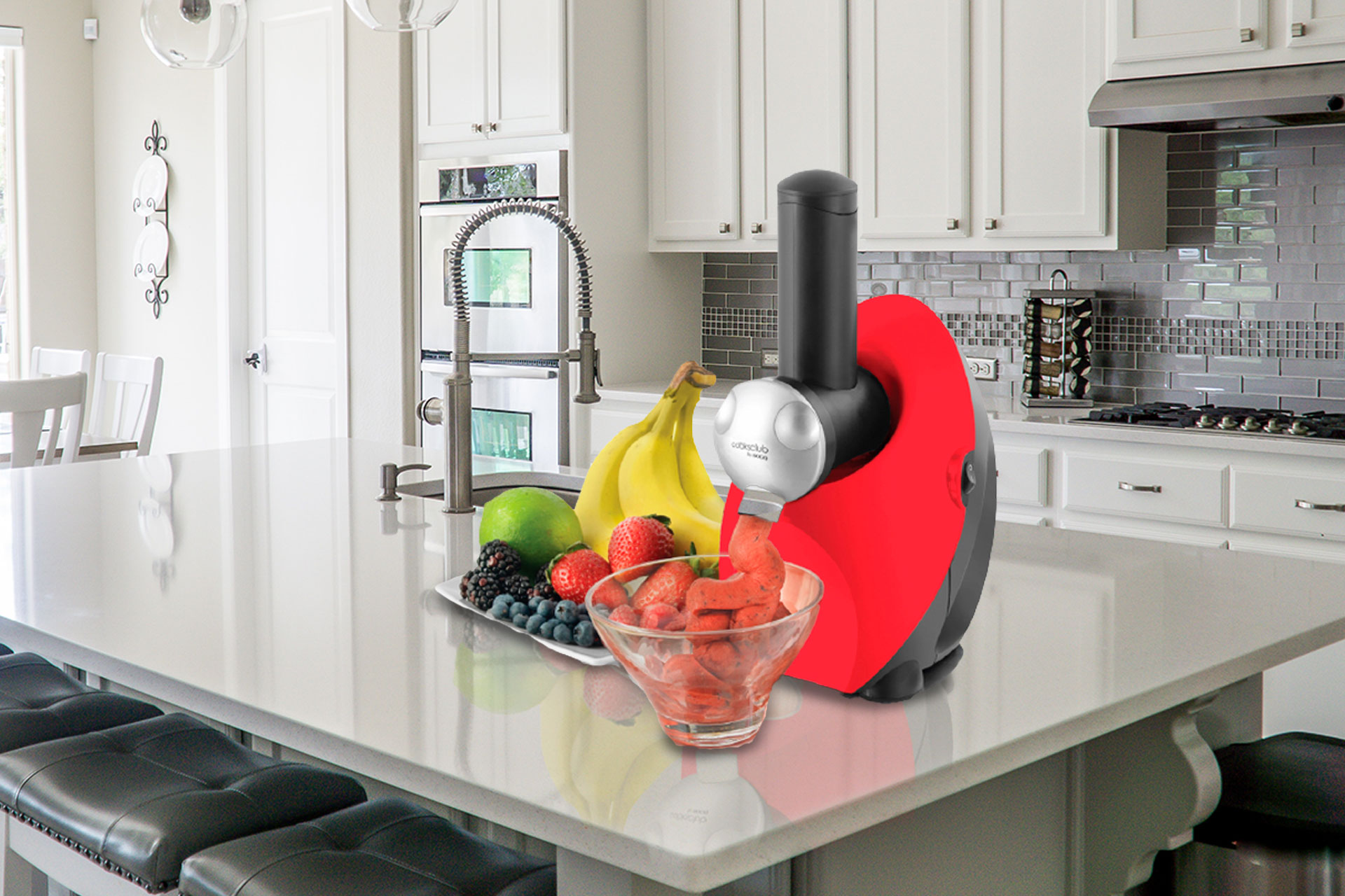 - 2) Inserisci la frutta congelata in piccoli pezzi nel tubo superiore (non superare il limite)
